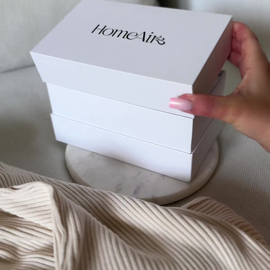 Urządzenie zapakowane jest w białe eleganckie pudełko z logo HomeAir - wystarczy czerwona wstążka i prezent gotowy do wręczenia.